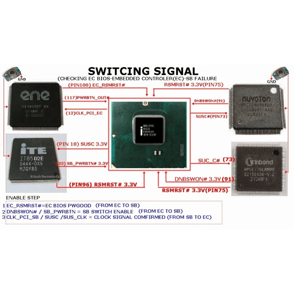 Advanced motherboard repair for dead, no power & liquid damage cases.
